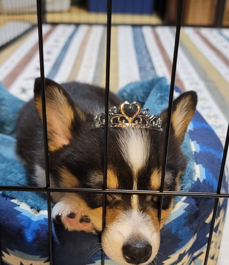 また、わんちゃんの毛色が暗めのカラーでしたので、お顔周りがぱっと華やかになるように、小さな王冠でのアクセントをご提案させていただきました。このご提案に対し「生まれた時につけていたティアラを思い出しました」と大変喜んでいただけました。