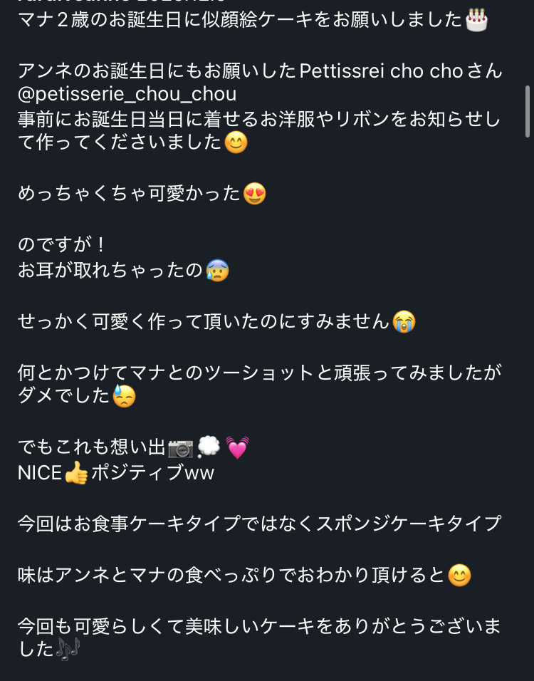 大切な2歳の記念日に当店にオーダーいただき、本当にありがとうございました!見事な食べっぷりのお話をお伺いでき、作り手としてこれ以上ない喜びを感じております。これからも元気いっぱいで、笑顔あふれる毎日を過ごせますよう心よりお祈り申し上げます。