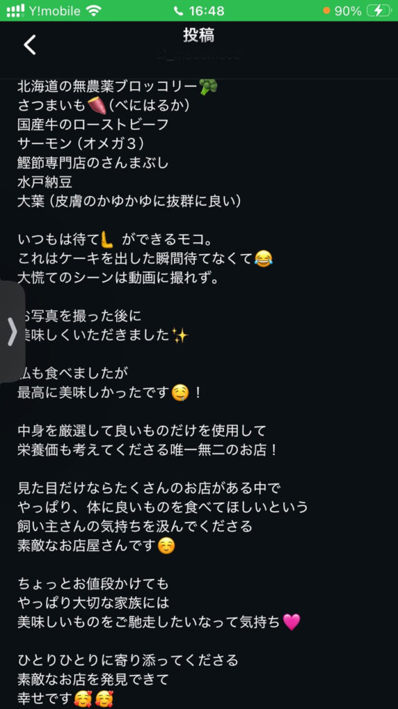 見た目だけならたくさんのお店がある中で、やっぱり体に良いものを食べてほしいという飼い主さんの気持ちを汲んでくださる素敵なお店屋さんです。